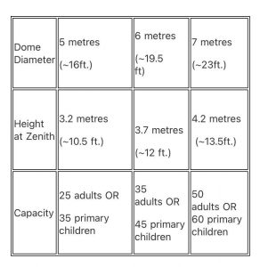 Our domes provide different sizes and designs to cater to your needs. Their capacity rank from 25-50 adults till 35-60 primary children in a session.